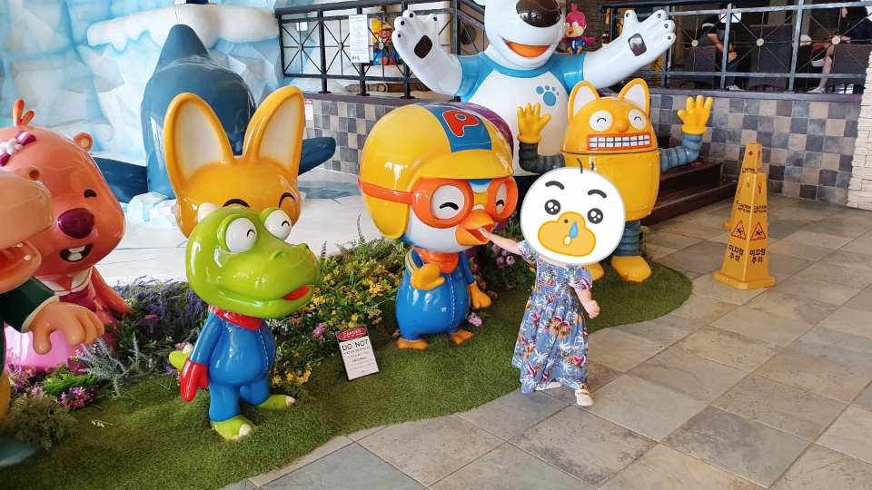 호텔 로비에는 이렇게 뽀로로와 친구들이 가득 있어요.