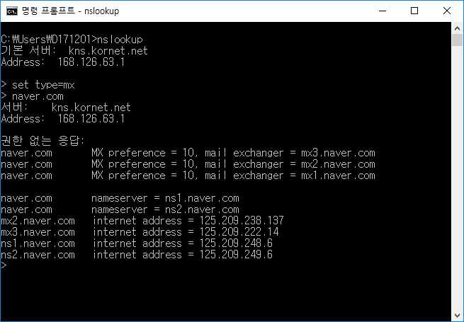 naver.com MX preference = 10, mail exchanger = mx1.naver.com