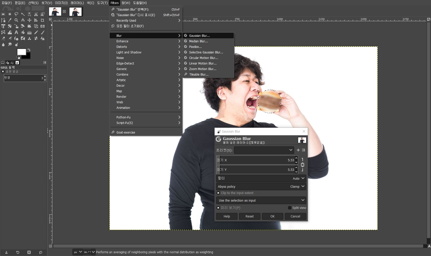 - Filter / Gaussian Blur