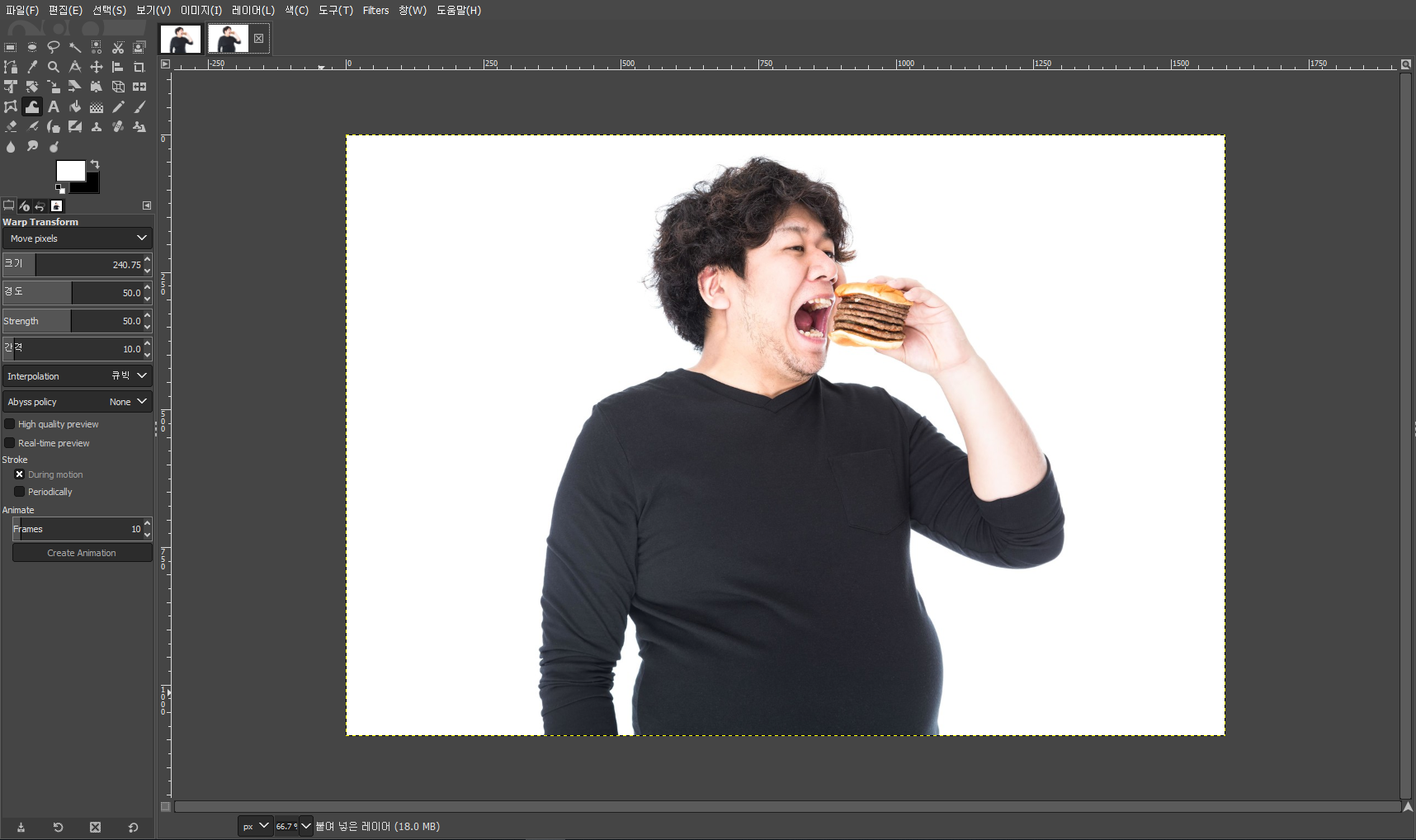 - 포토샵 리퀴파이 기능입니다.