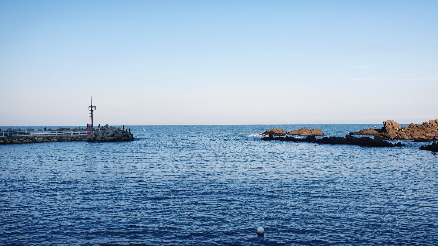 방파제와 바위들이 포구를 가려줘서 파도가 체험장까지 심하게 들어오진 못합니다.