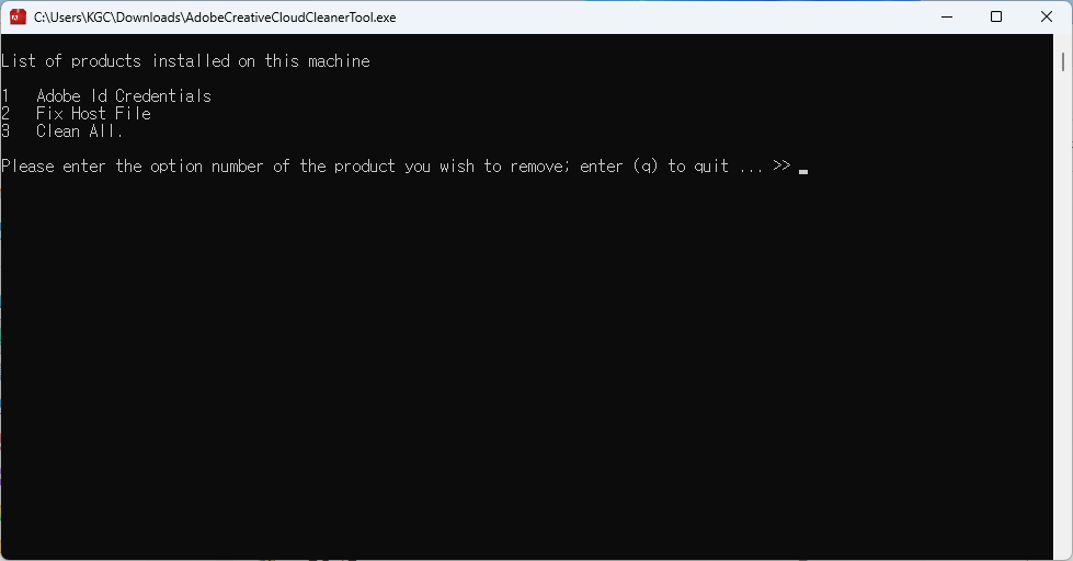 - 설치된 다른 Adobe 제품이 없을 경우 1 입력 후 엔터