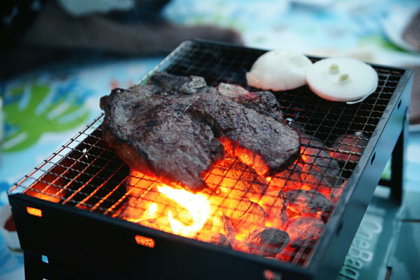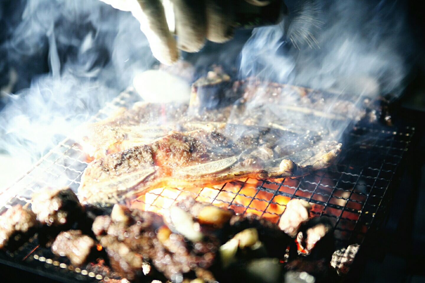 티본스테이크용 소고기를 숯불구이 해 먹는 난 한쿸인 ㅎㅎ
