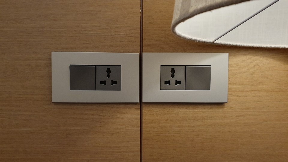 리모델링되어서 콘센트가 110V & 220V 겸용으로 설치가 되어 있어요.