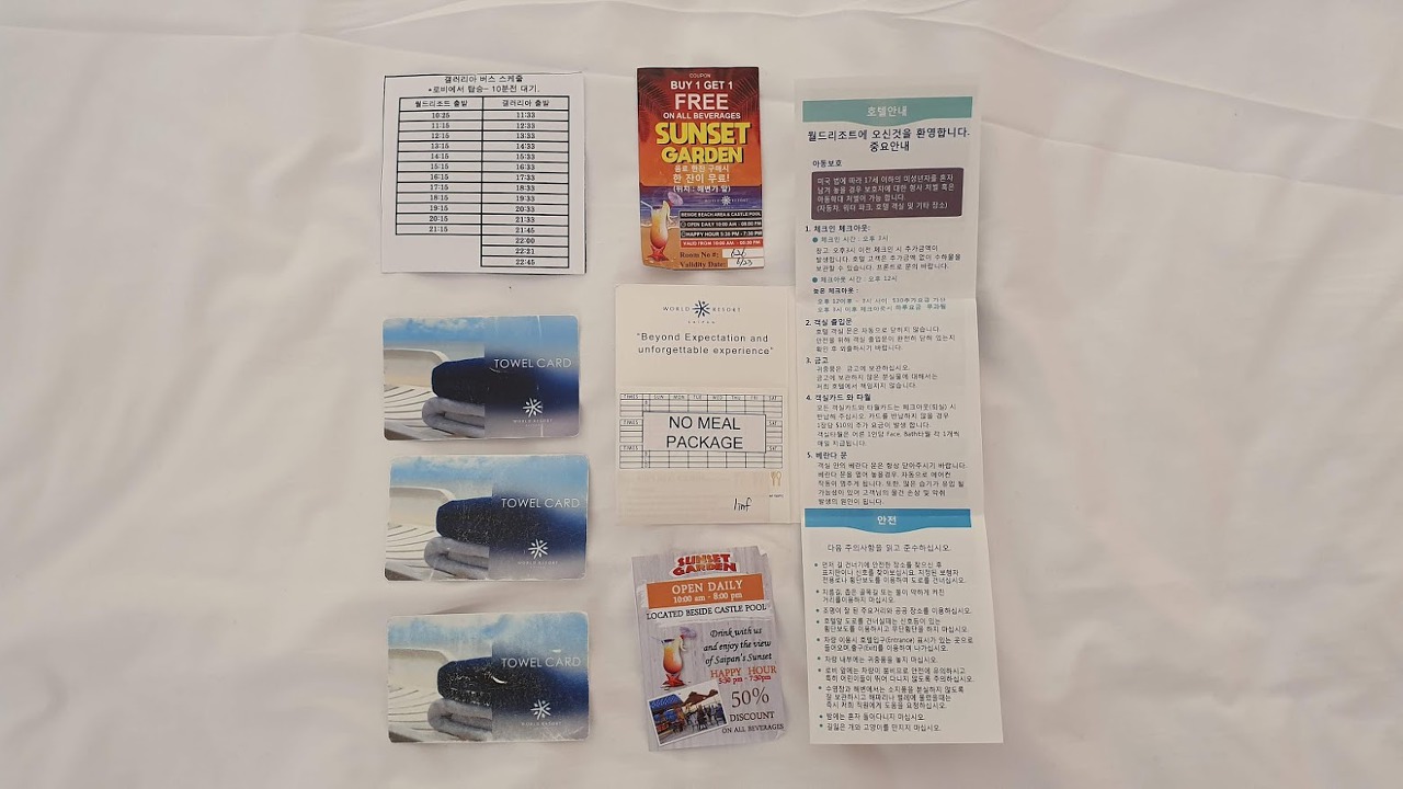 체크인하시면 카드키 2장이랑 타월 카드가 같이 들어 있습니다.