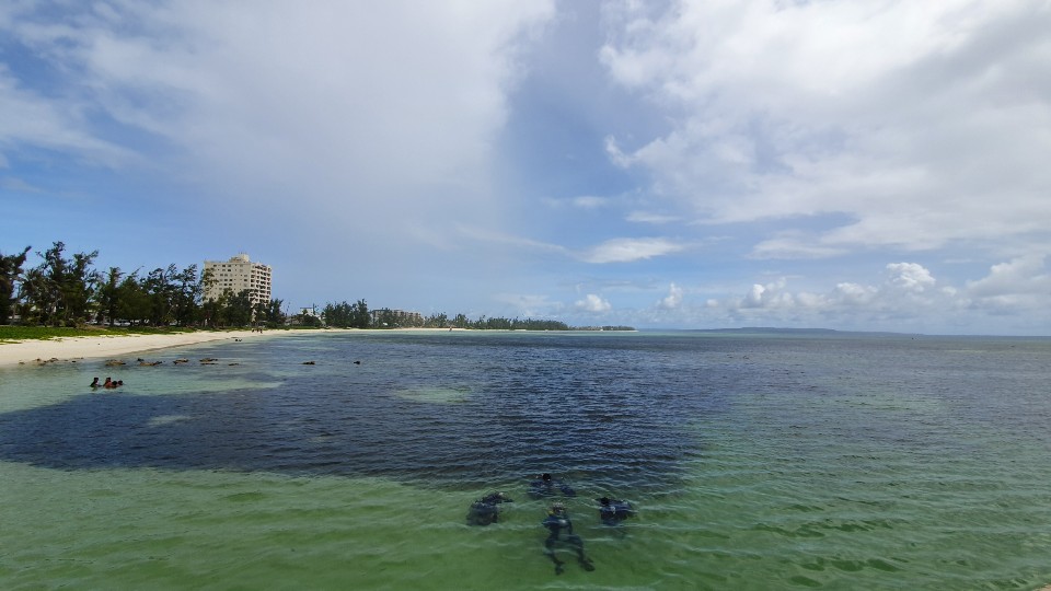 사이판 대부분의 바다가 성인 무릎 정도의 수심에 바닷물이 따뜻해서 아이들 놀기엔 정말 좋았어요.