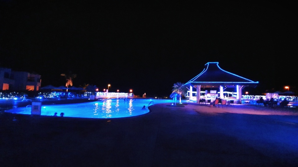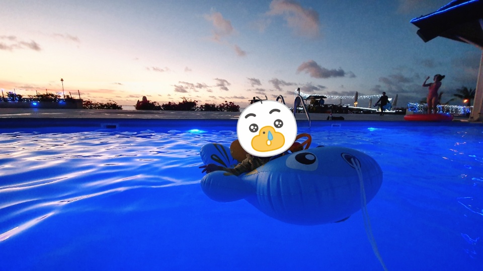 해질녘 파란 조명의 풀장에서 석양을 바라보는 것도 정말 좋았어요.