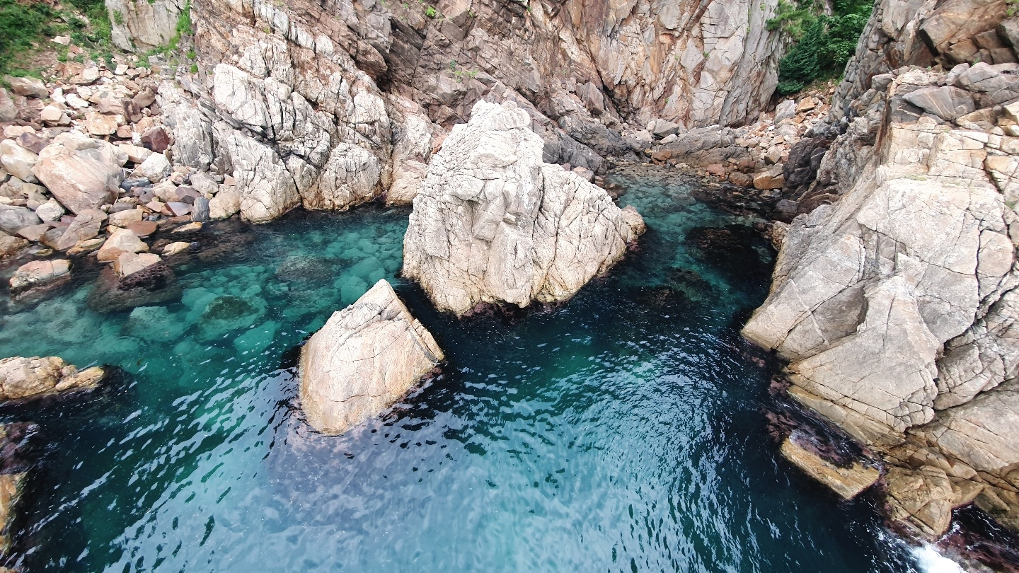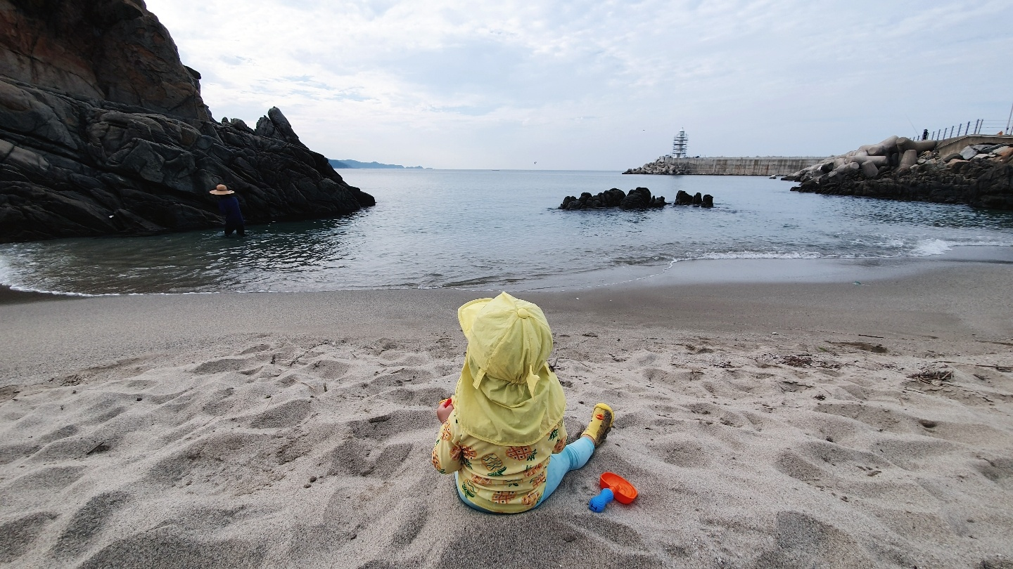 장호항은 너무 사람이 많고 복잡해서 장호항에서 10분 거리에 있는 아주 조용한 초곡항 문암해변에서 스노클링을 하기로 했습니다.