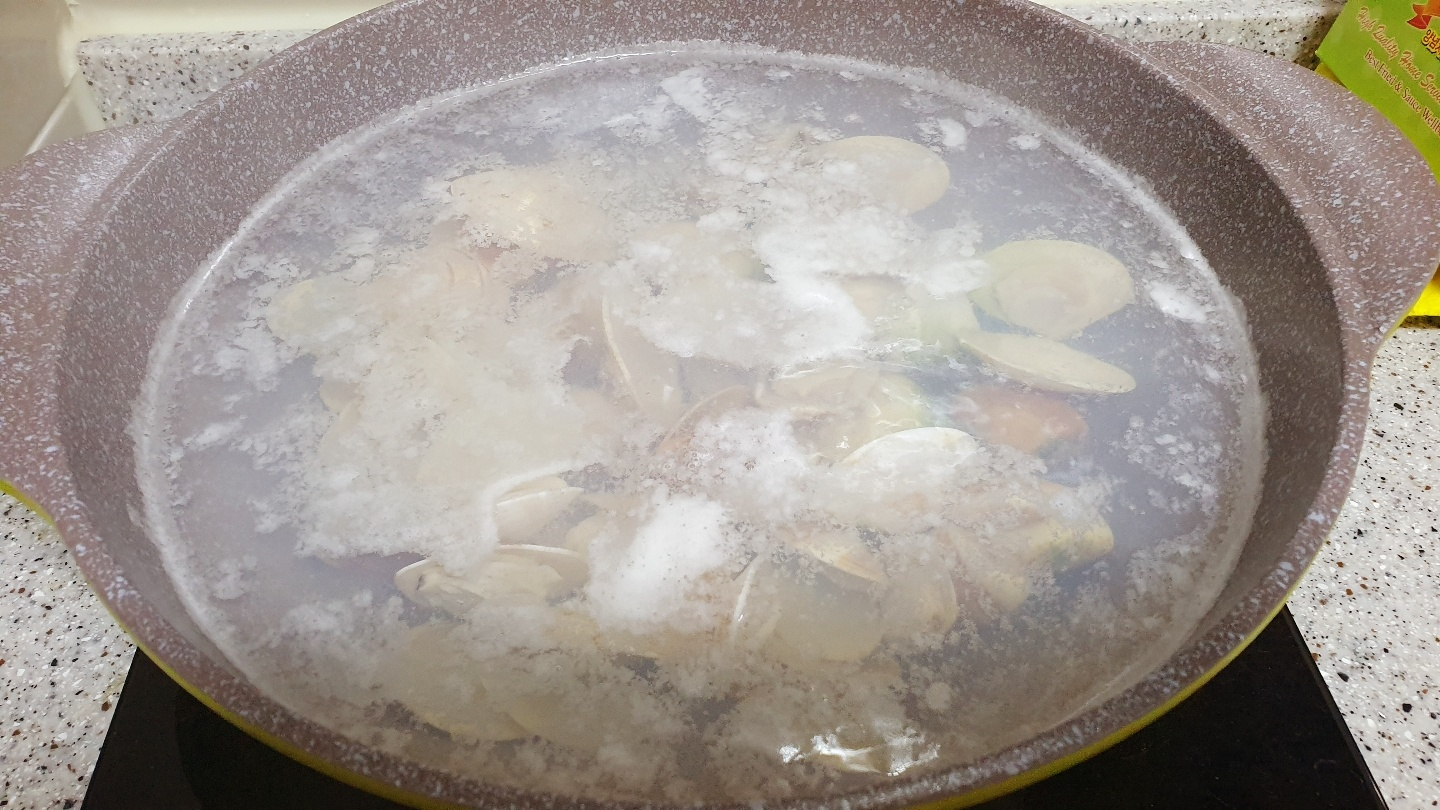 아침에 일어나서 어제 해감해둔 녀석들을 꺼내 봅니다.