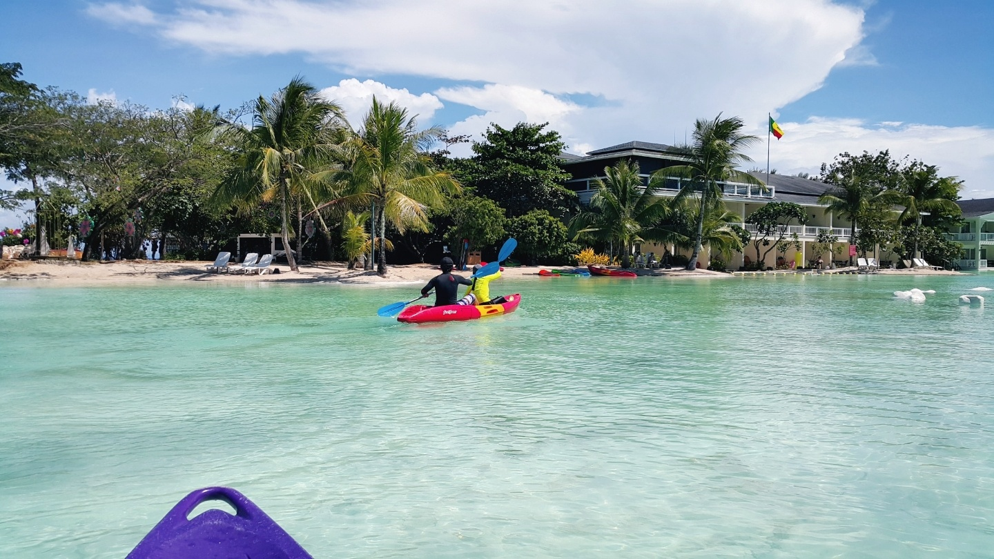 이제 리조트 바로 앞바다에서 배 타고 출발한답니다.