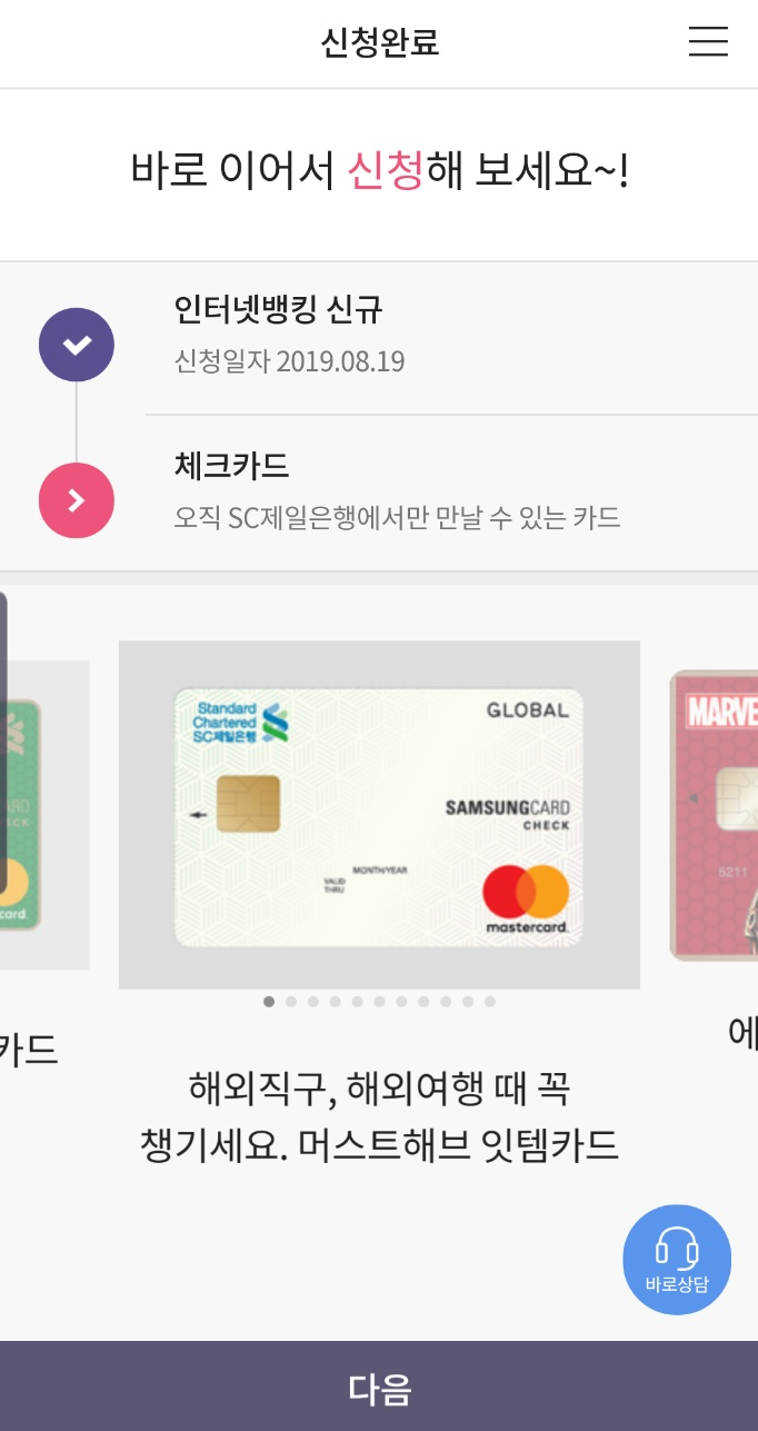 - 체크카드 필요하시면 같이 신청하시면 됩니다.