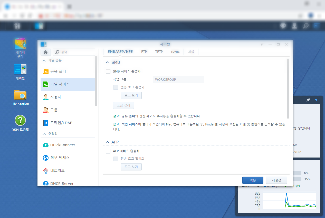 시놀로지 NAS 관리자 계정으로 접속합니다.