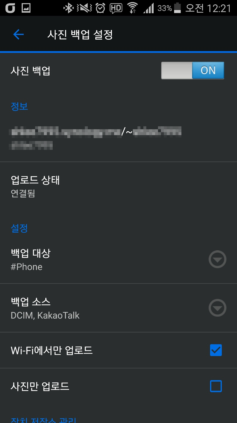 Wi-Fi에서만 업로드 해제하셔도 상관없습니다.