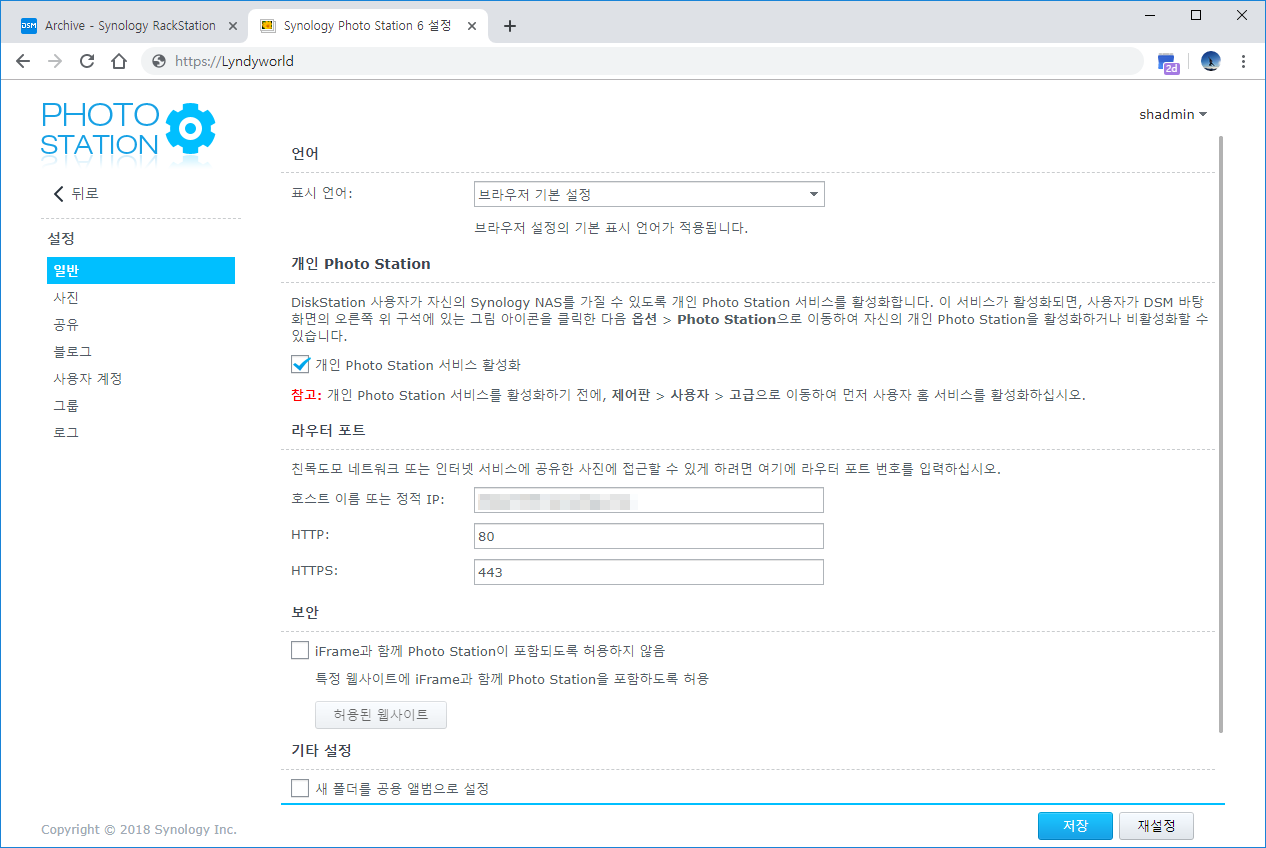 시놀로지 포토 스테이션 설치 및 백업 설정입니다.